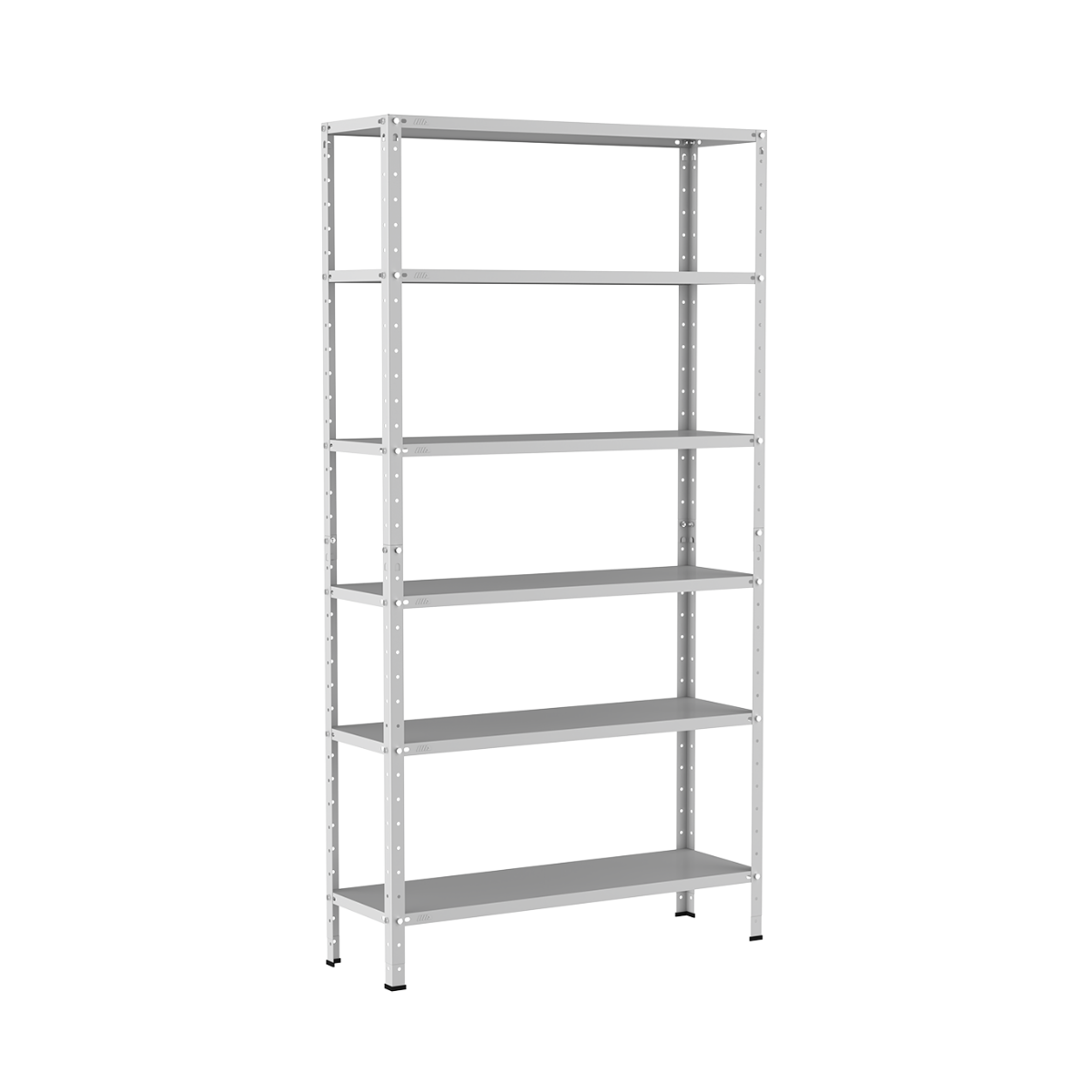Produto de Aço 1008 de alta qualidade com tratamento anti-ferruginoso, CERTIFICADO conforme a ABNT, contém 06 prateleiras com dobra dupla em CHAPA 26 (0,45mm) com reforço central, resistente a 25kg distribuídos uniformemente por prateleira e 04 colunas em CHAPA 20 (0,90mm), de modo que permite a regulagem livre da altura das prateleiras conforme a necessidade.